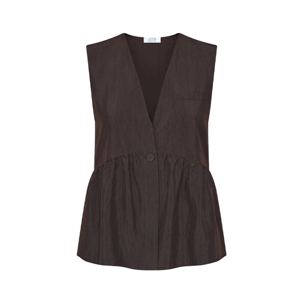 Love1478 er en fin top uden ærmer. Den har en lille knaplukning i halsen.