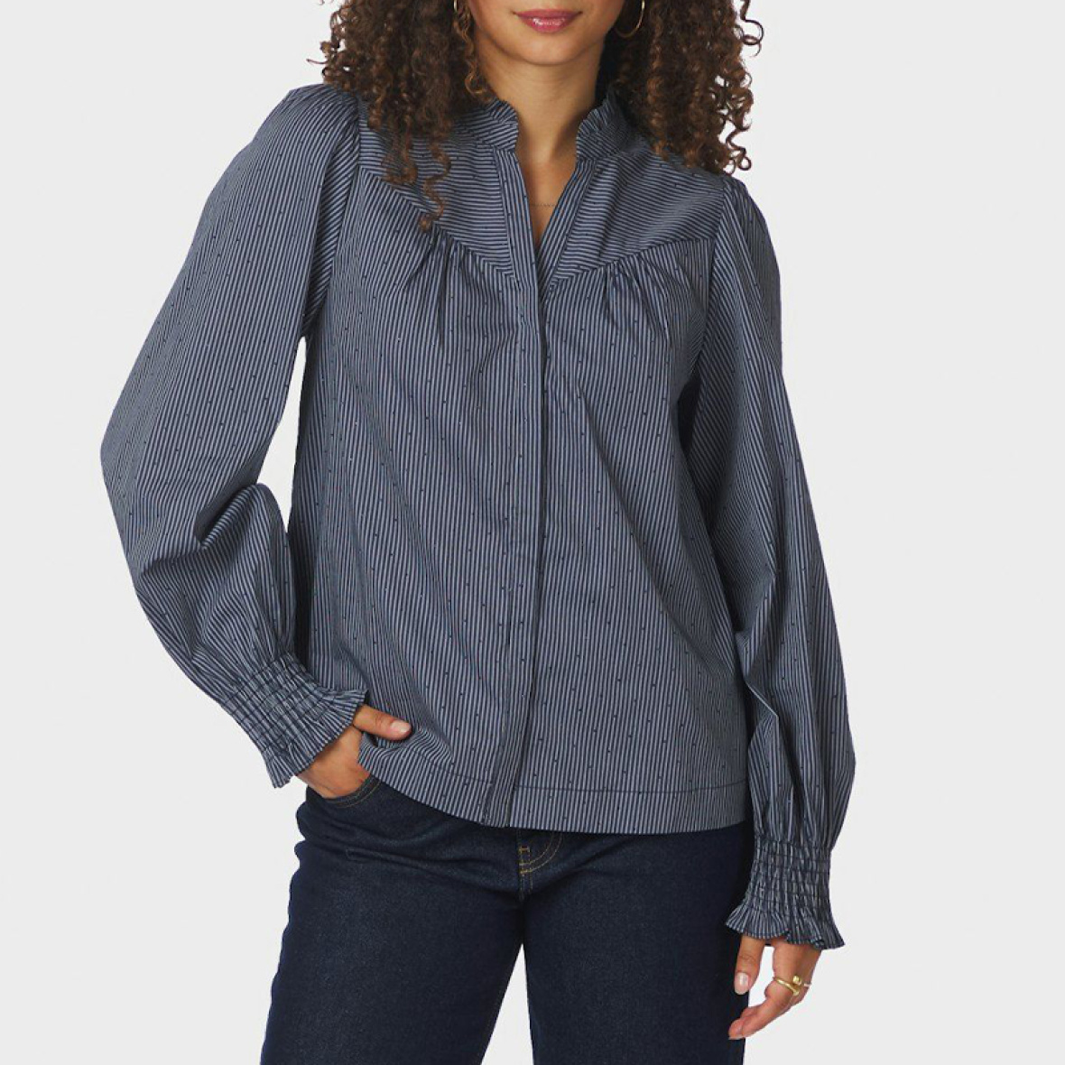 Fin bluse i en stribet kvalitet med små similisten, der giver et diskret shine.