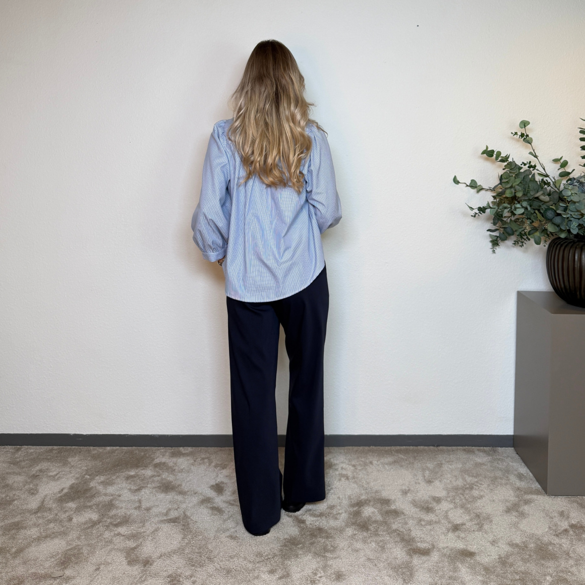 Skjorten lukkes foran med synlige knapper og har et let og feminint udtryk. En nem model til både hverdag og arbejde.