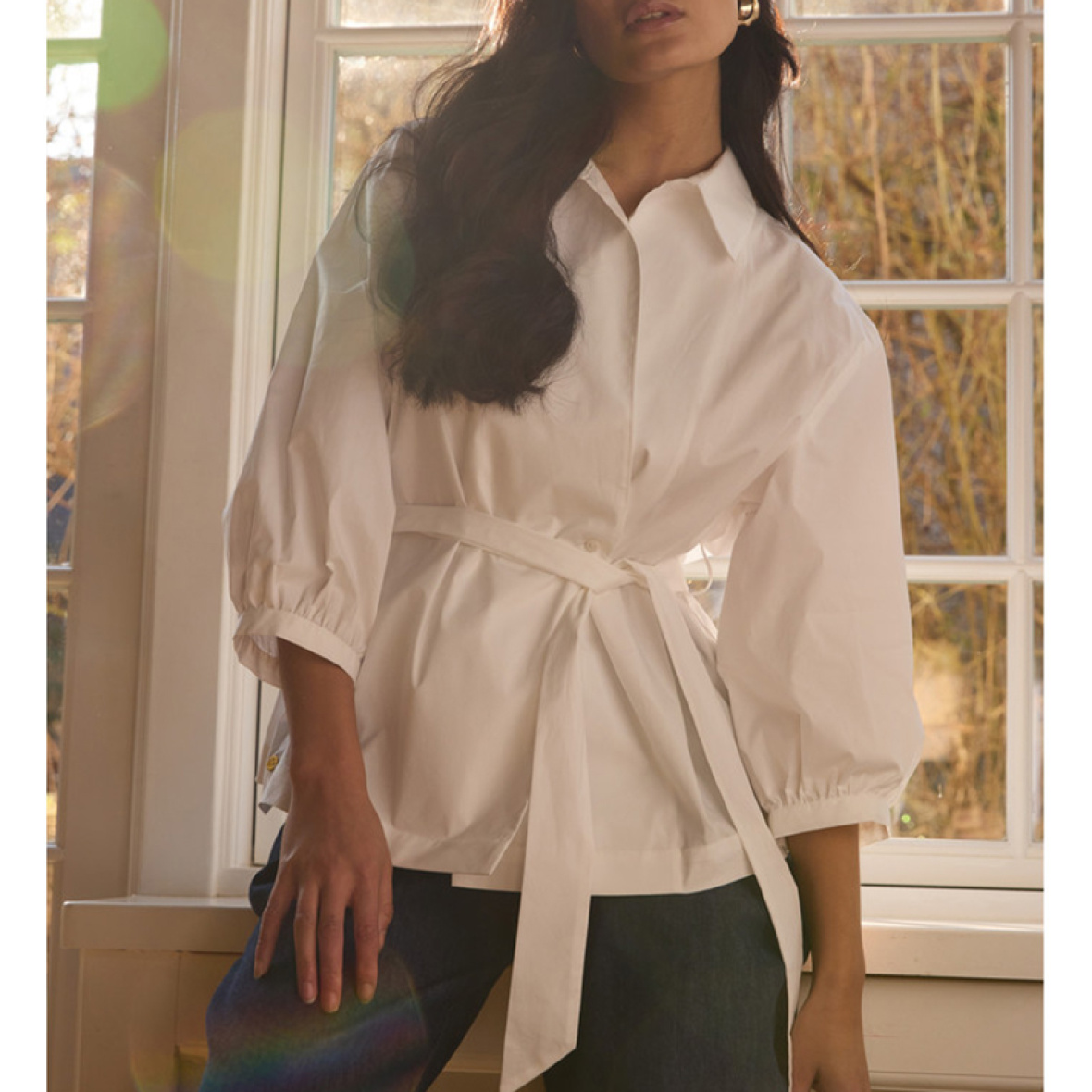 Skjorten er nem at style til både bukser med høj talje og til nederdele, når du ønsker et mere tidløst look.