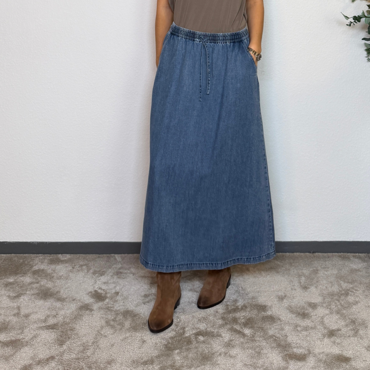 Smuk nederdel med bindebånd i taljen, der giver en flot og feminin pasform.