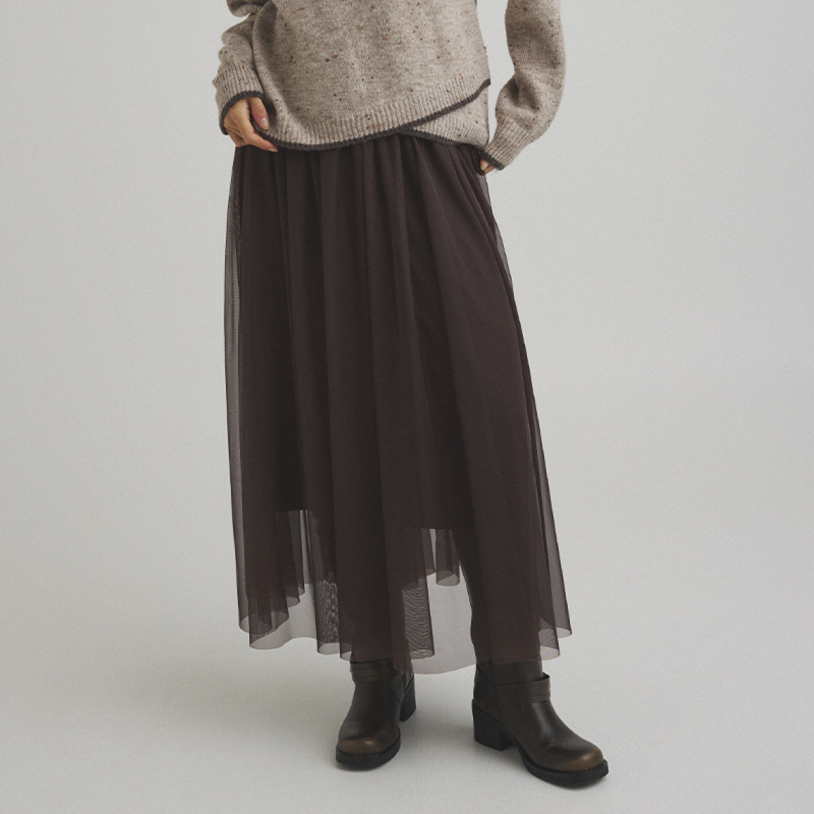 Feminin midi-nederdel i let og luftig tyl, der giver et smukt og voluminøst fald.