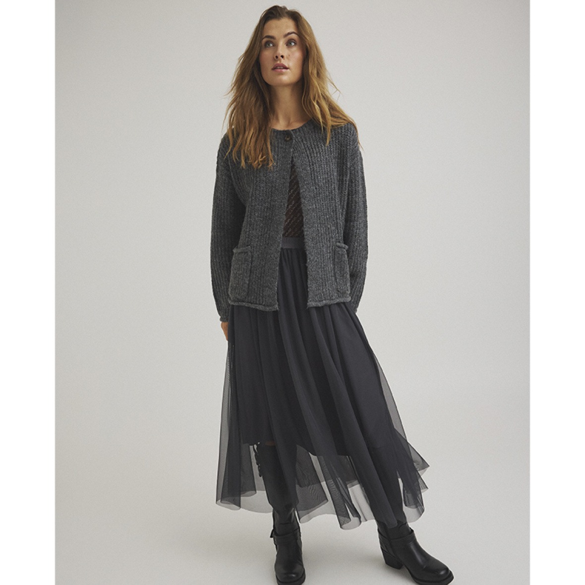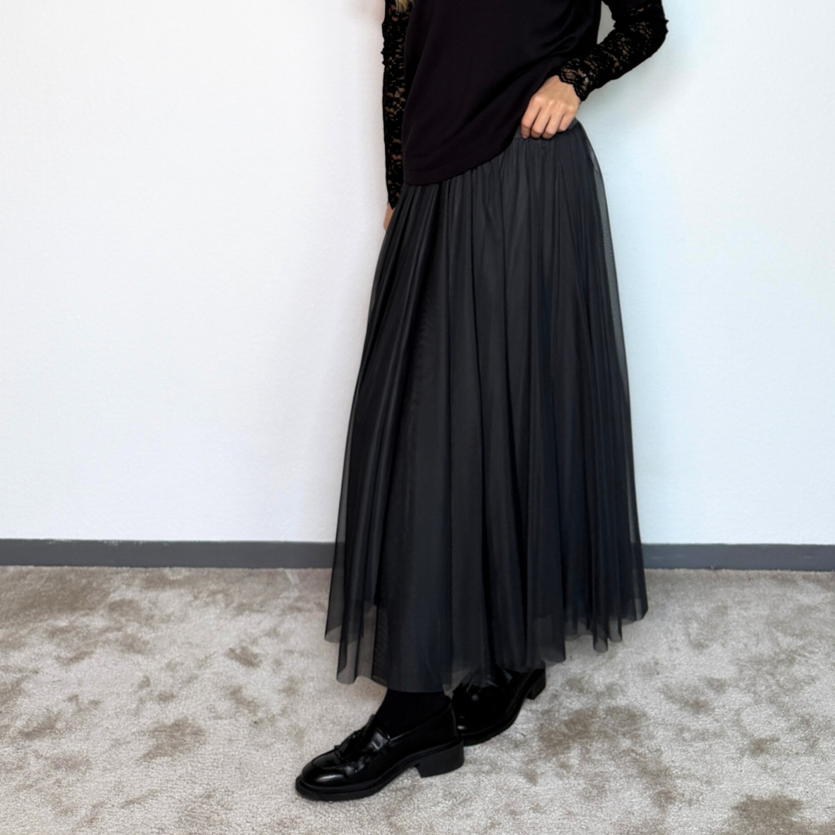 Feminin midi-nederdel i let og luftig tyl, der giver et smukt og voluminøst fald.
