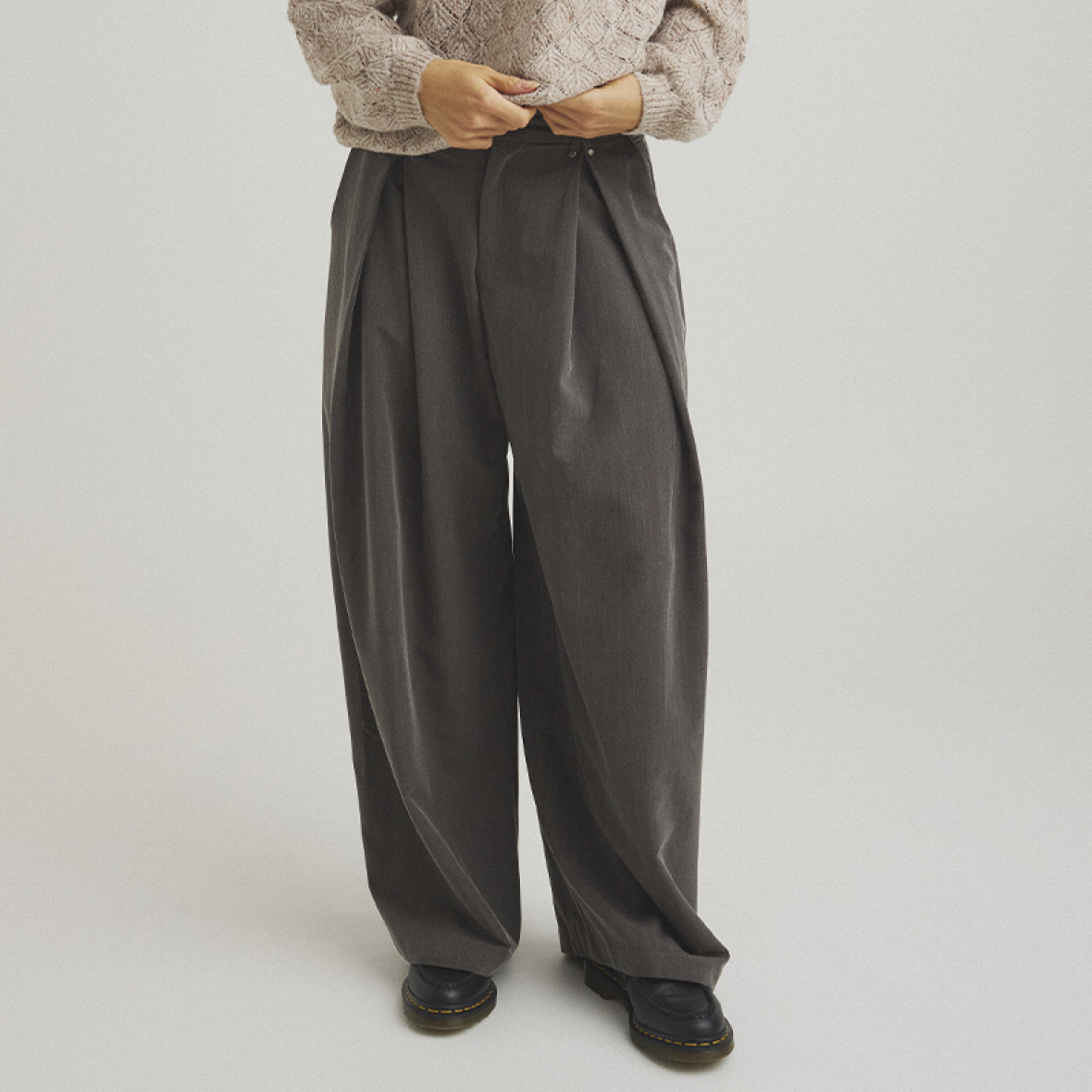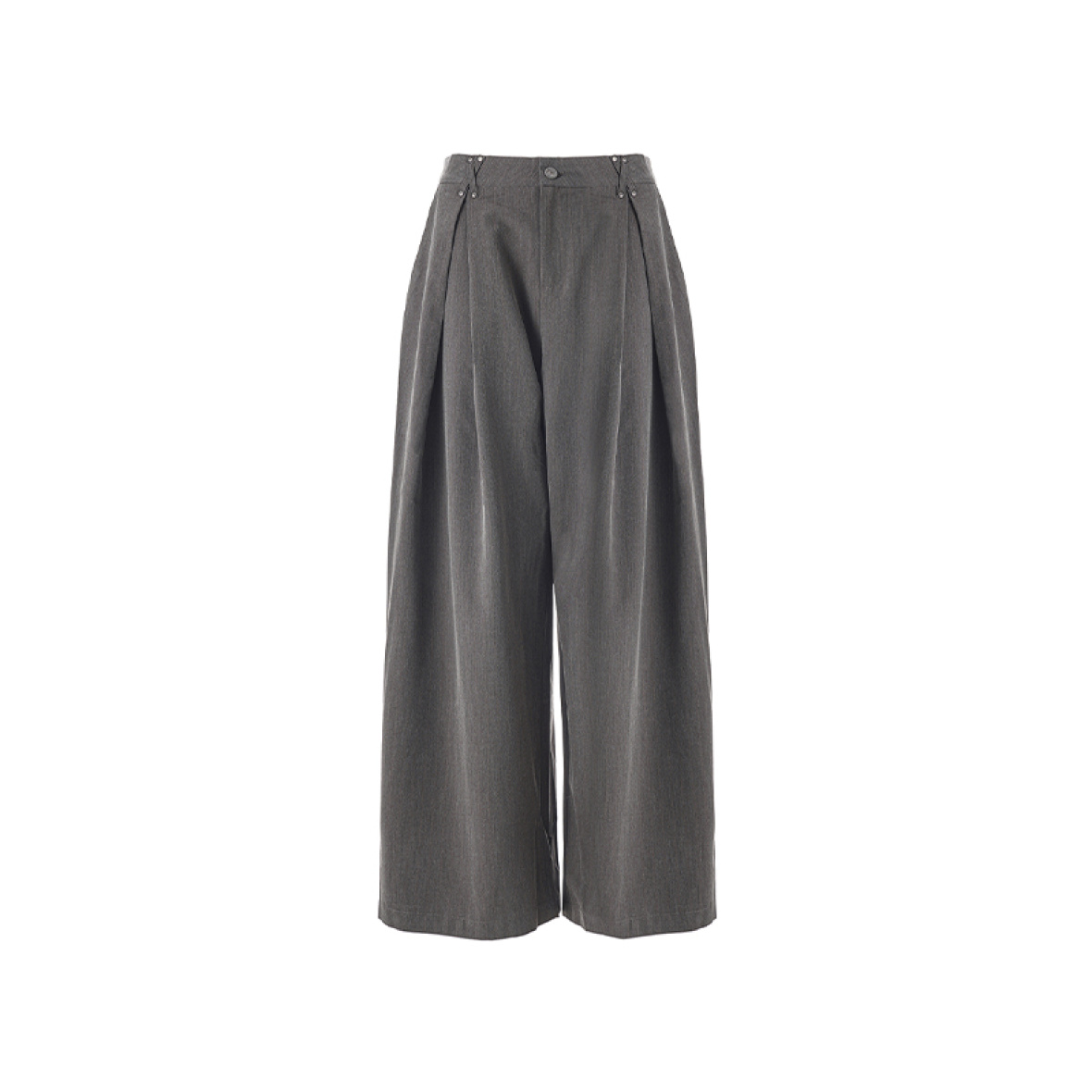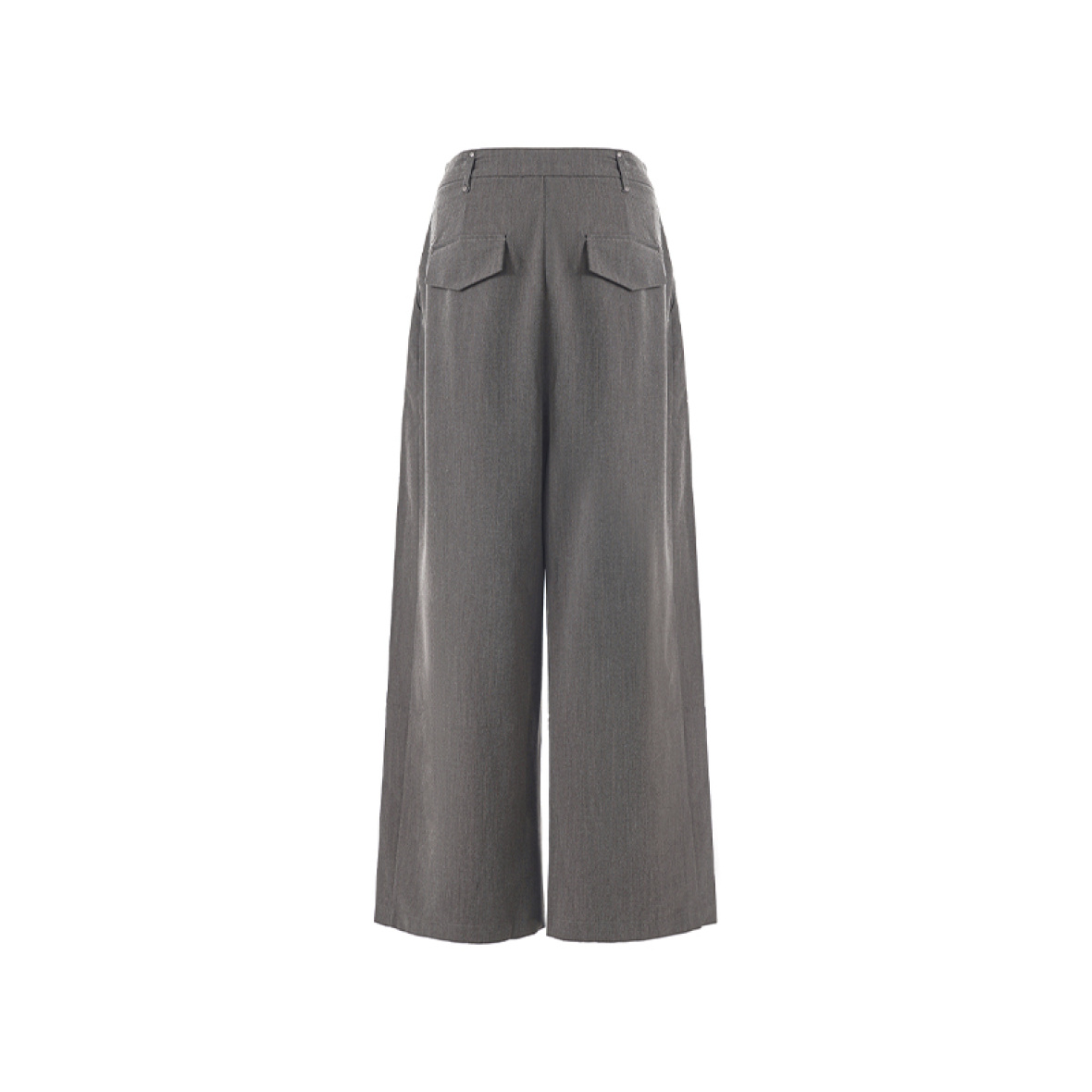 Elegante grå bukser med høj talje og brede ben, der skaber en flot og moderne silhuet.