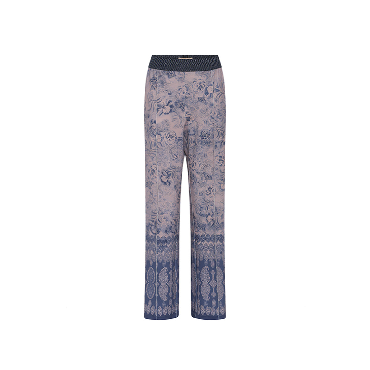 Lækre bukser i et feminint, roséblåt print, der matcher blusen i samme serie.