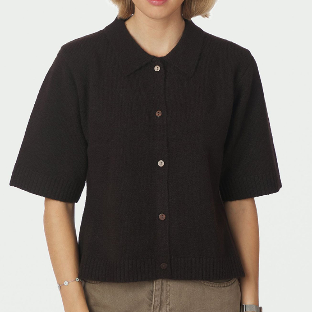 Kortærmet, strikket bluse fra neo noir i en smuk brun nuance.