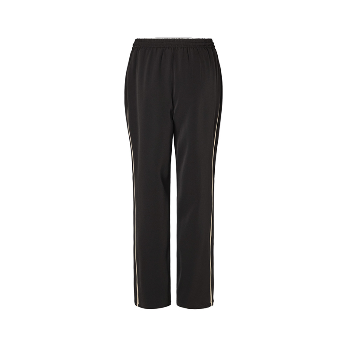 Modellen har elastisk talje med bindebånd og lange lige ben, som giver et flot fald.