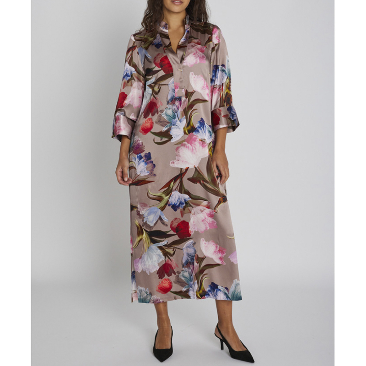Den er designet med V-udskæring og 3/4-ærmer, som skaber en fin balance mellem det afslappede og det sofistikerede.