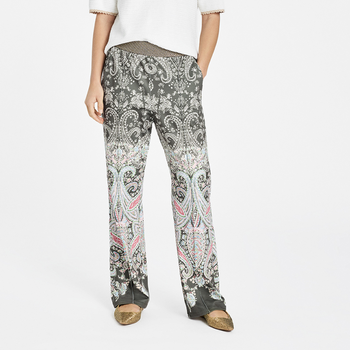Pasformen er lige og falder flot ned langs benene, hvilket giver et afslappet, men elegant udtryk.