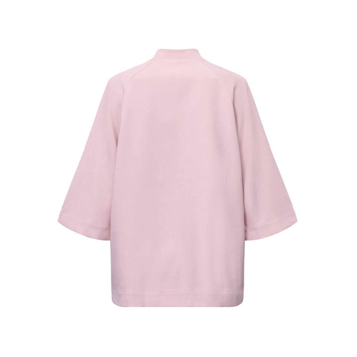 Jakken har raglanærmer i trekvartlængde, som understreger det bløde fald, samt en diskret ståkrave og gennemgående lynlås foran.