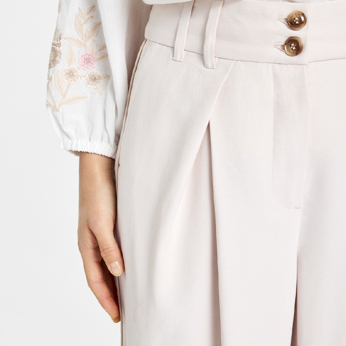 Bukserne har et smukt og let fald, som giver et stilrent og feminint udtryk.