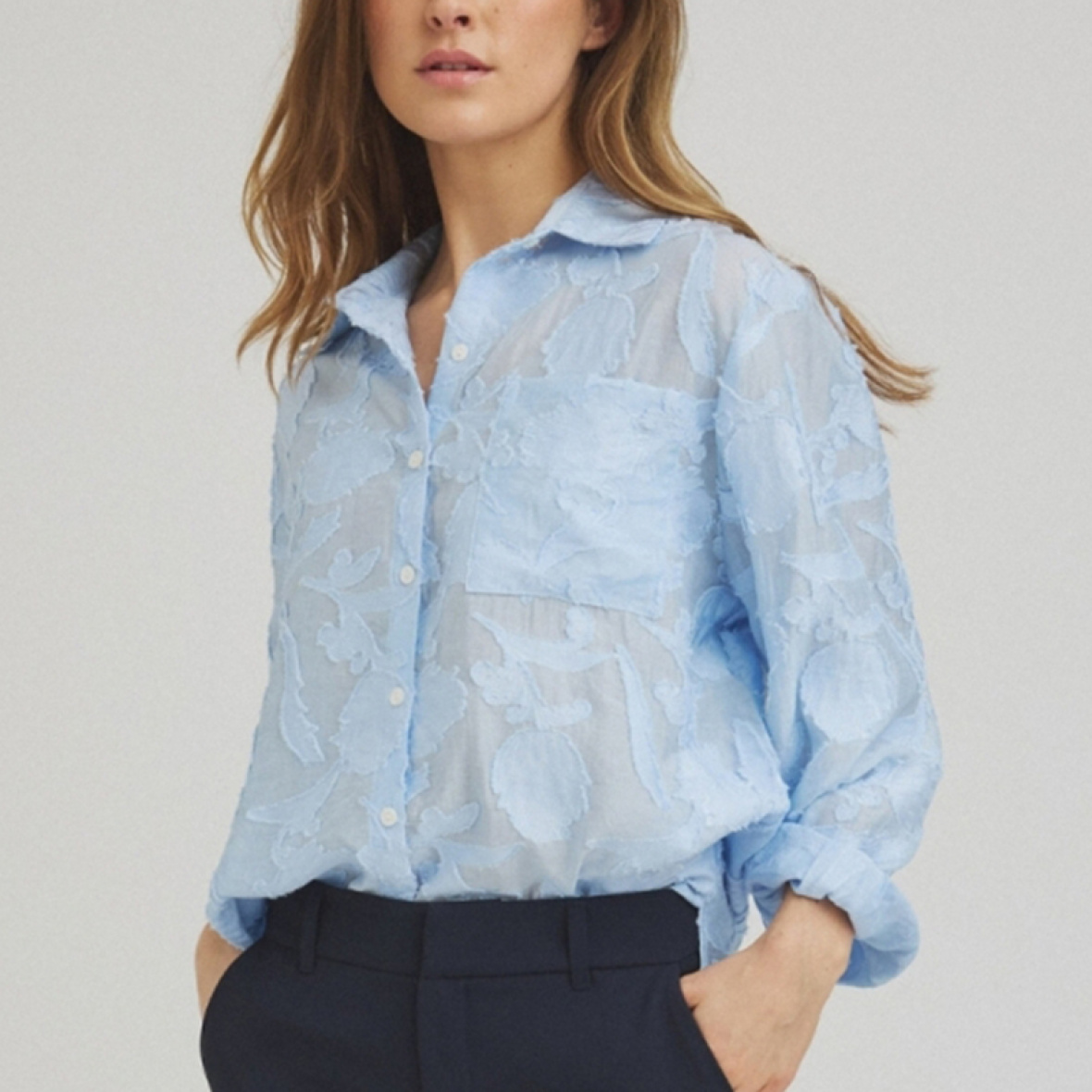Smuk ensfarvet skjorte fra Luxzuz med et feminint og eksklusivt udtryk.