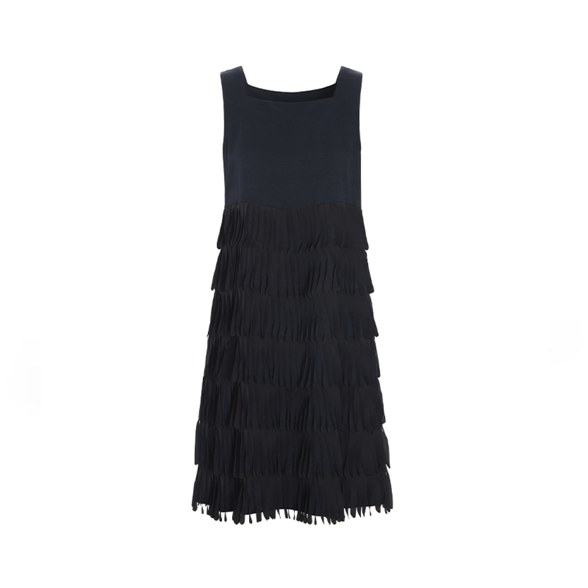 Unik kjole med fine frynser, der giver et festligt og elegant udtryk.