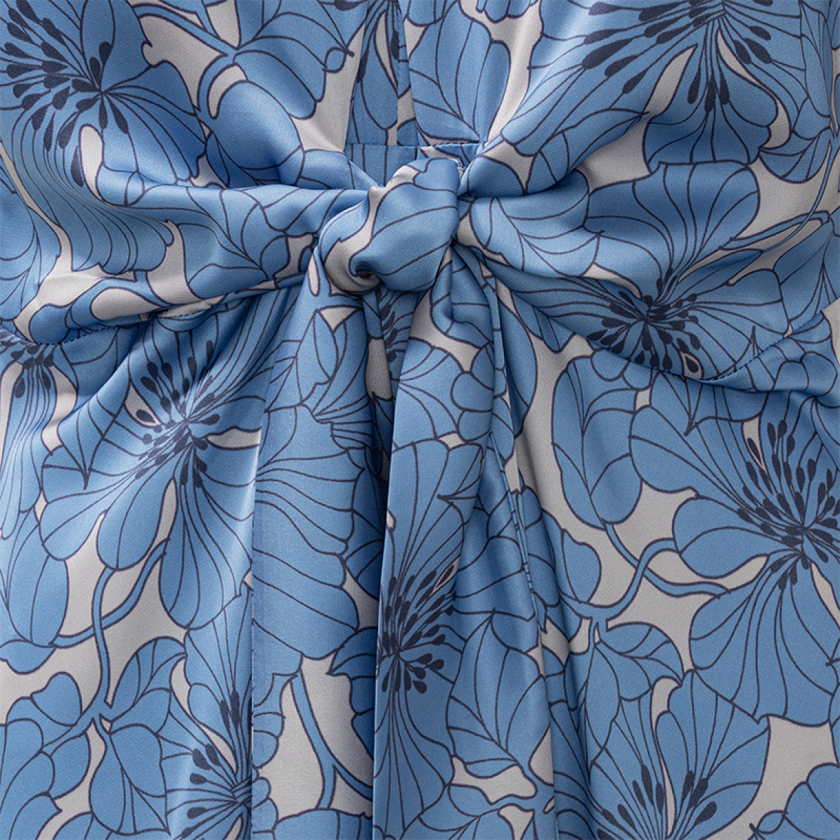 Bindebåndet i taljen fremhæver figuren og skaber en flot silhuet.
